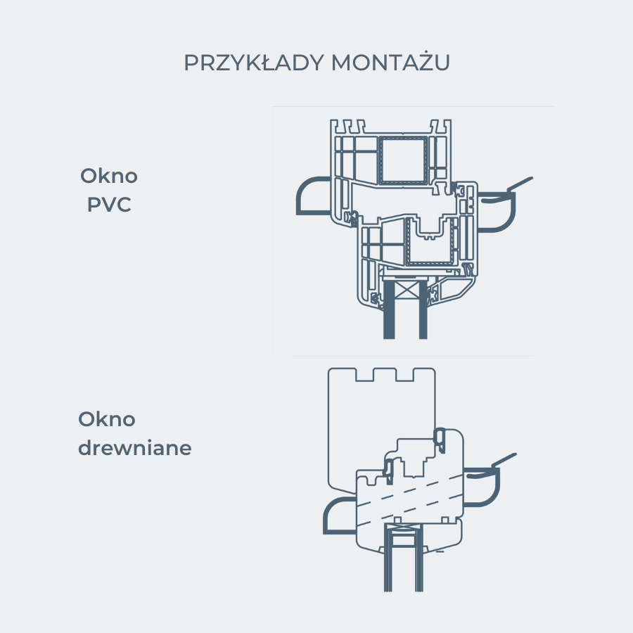 - Nawiewniki manualne SM Tip Vent oraz SM Tip Vent MINI standardowo montowane są do stolarki za pomocą wkrętów. W przypadku montażu nawiewnika w oknie z roletą zewnętrzną zamiast czerpni należy zastosować siatkę płaską SP400,