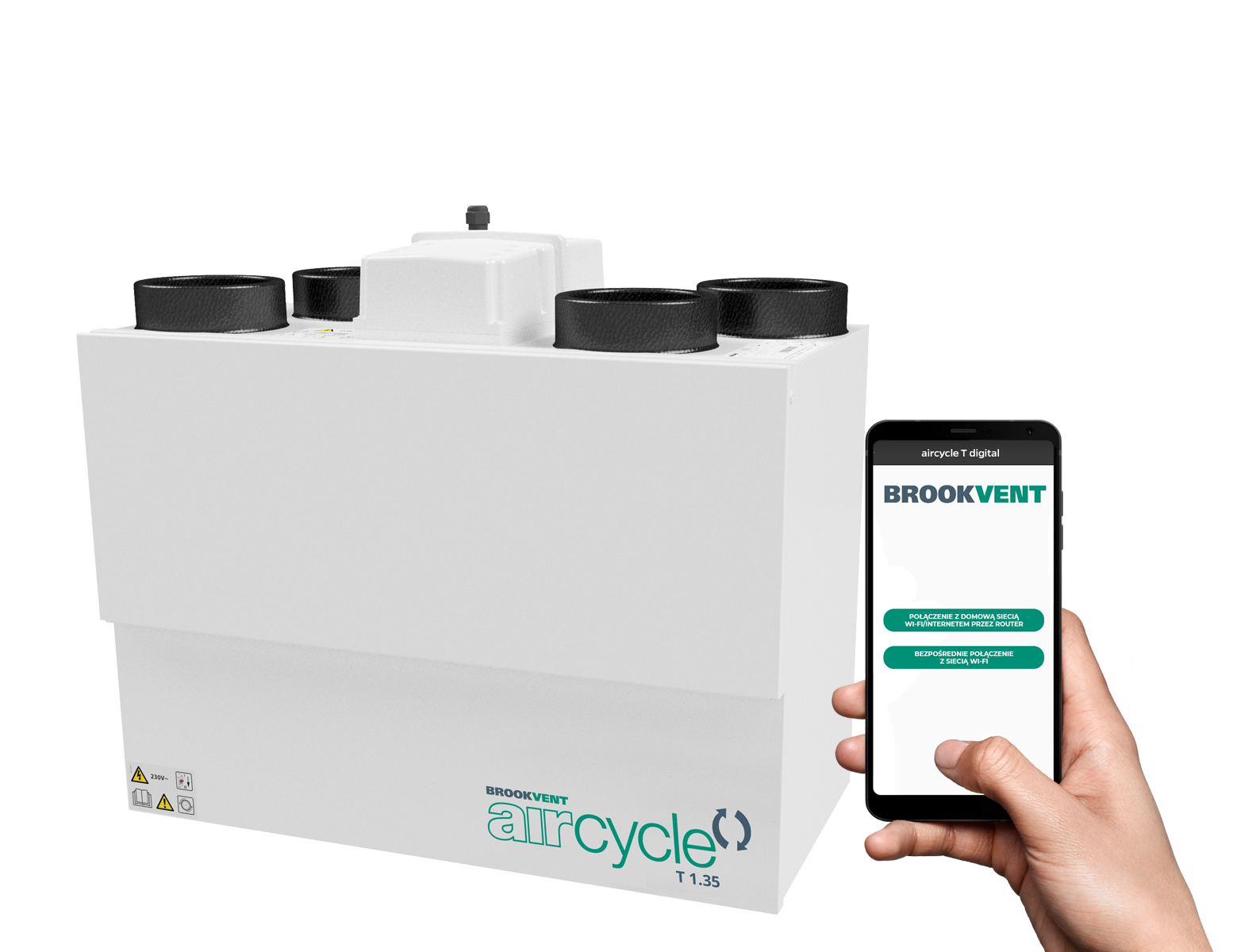 Rekuperator aircycle 5.1 działa poprzez efektywny odzysk ciepła z powietrza pobieranego z pomieszczeń wilgotnych (łazienka, kuchnia itp.), które standardowo byłoby oddane do atmosfery. Odpowiedni dla dużych domów.